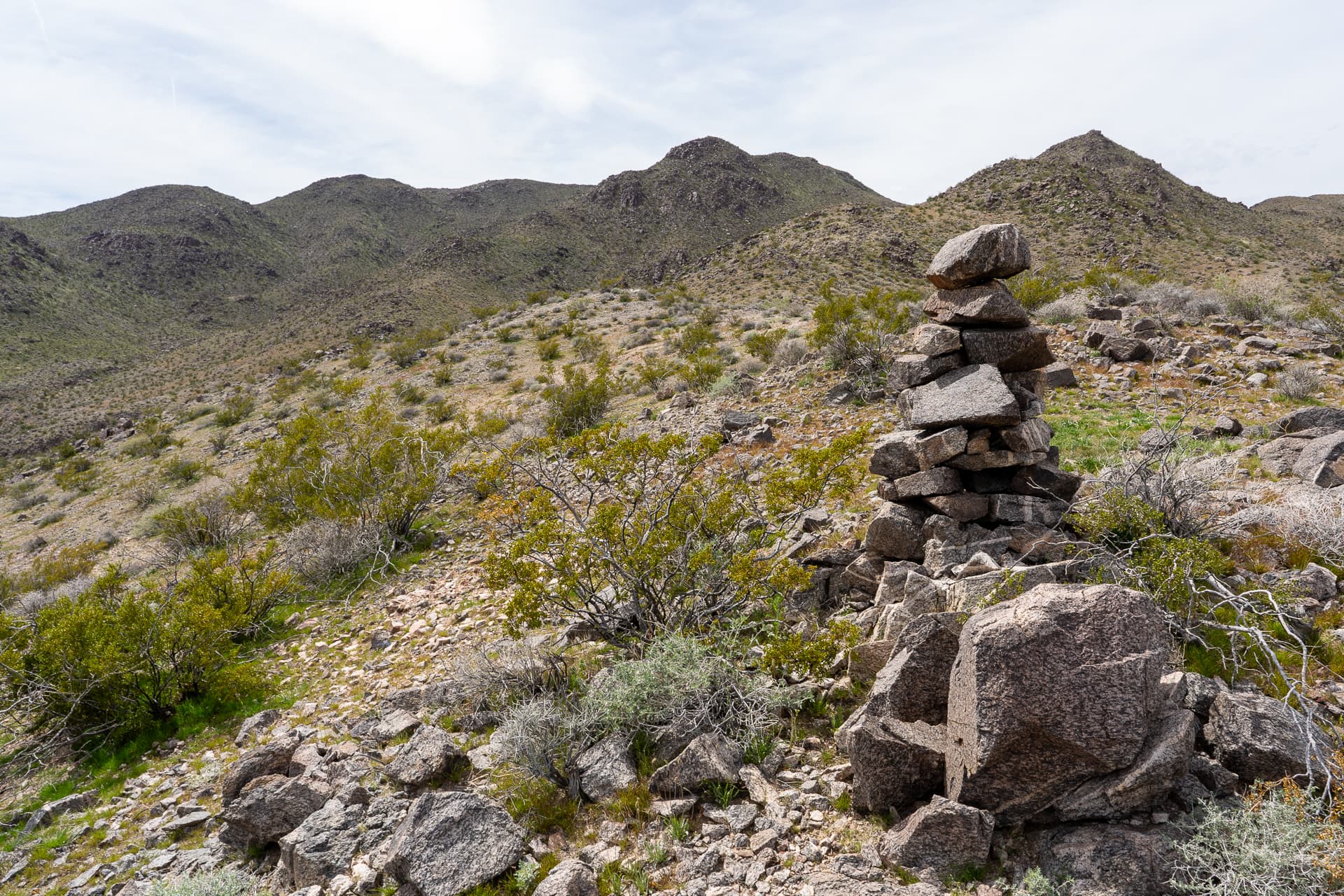From Old Spanish Trail Highway, headed northwest across a bajada.View back. The Kingston Range is on the right.Picking up a faint jeep trail.Aiming for the canyon, right of center.Entering a wash.Juniper trees nestled inside the narrowing canyon.View back.Dry fall obstacle. Bypass to the right.View back.Exiting the canyon to the climber's right.Gaining the ridge.View back.Continuing along the ridge to a saddle.View back.Approaching the saddle.From the saddle, Nopah Range High Point (left) and Nopah Peak (right).Crossing a shallow valley en route to Nopah Range High Point.View northwest toward Nopah Peak, next up.Starting up Nopah Range High Point's northeast slope.View back toward the saddle.Class 1/2 up Nopah Range High Point's northeast slope.Gaining the ridge, short traverse to the summit (right of center).View back along the ridge. Nopah Peak is on the left.Nopah Range High Point summit. View south.View west/northwest across Chicago Valley into Death Valley National Park.View northeast toward the town of Pahrump.Descending Nopah Range High Point en route to Nopah Peak's east ridge.Arriving at a drainage between Nopah Range High Point and Nopah Peak.Following Nopah Peak's east ridge.View back. Nopah Range High Point is on the far right.Ascending Nopah Peak's east slope.Low Class 2.View back from just below the summit of Nopah Peak.Nopah Peak summit. View north.Closeup of the colorful Nopah Range.View east into Pahrump Valley.Returning to the saddle along Nopah Peak's east ridge.View back toward Nopah Peak from the saddle.Descending back into the canyon.I tripped and nearly faceplanted on this perfect little agave utahensis.Returning to Old Spanish Trail Highway, making a more concerted effort to follow the jeep trail.